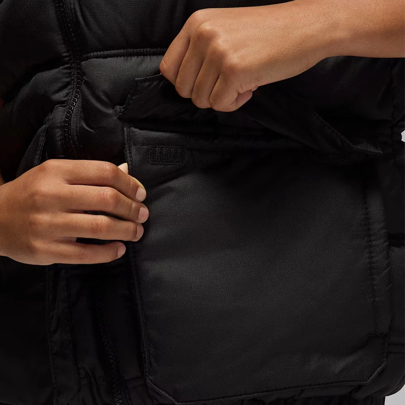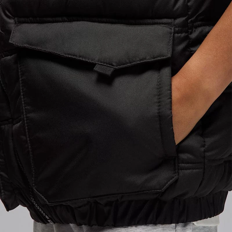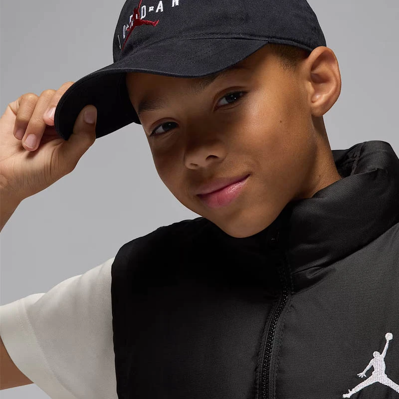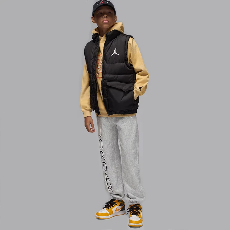 - Приемете този класически модел, за да се изправите срещу студа. Топлоизолация. Водоотблъскваща материя. Този детски елек от серията на Jordan с цип е незаменимо облекло за гардероба на вашето дете.