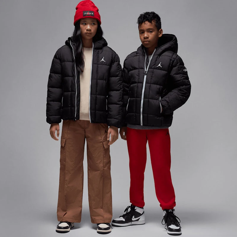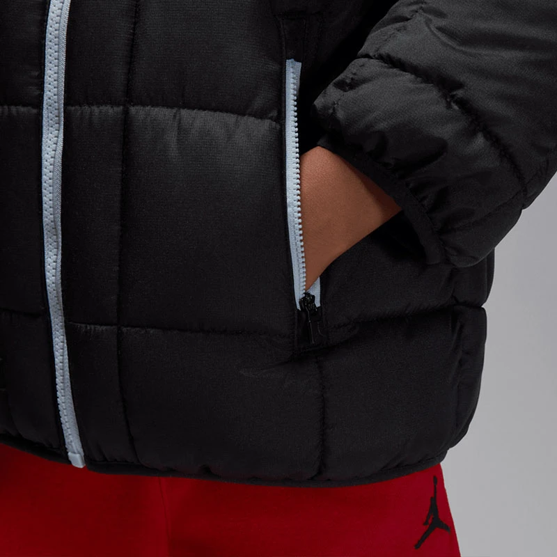 - Oвежете стила си и се предпазете от студа с детското зимно яке Jordan в черно, което съчетава модерен градски стил с необходимата топлина за вашите зимни визии.