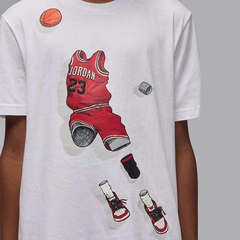 - Вашият спортен дух ще изпъкне с този уникален модел тениска с къс ръкав Jordan JDB Ghost за момчета, благодарение на дръзката и привличаща погледа графика отпред.