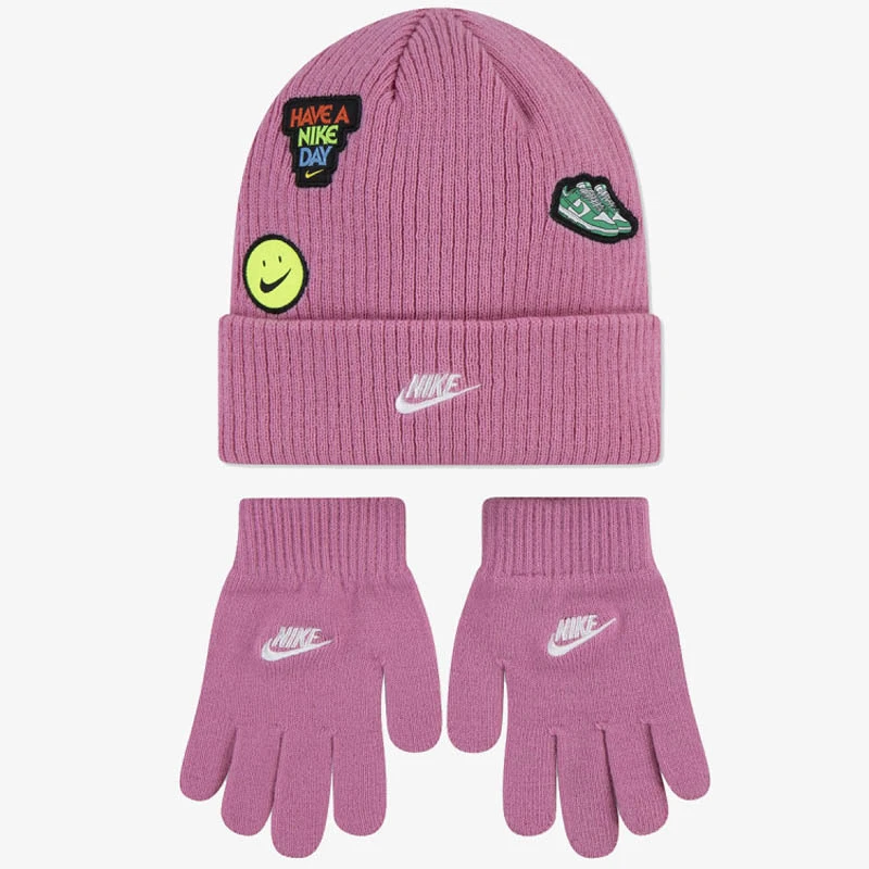- Комплекта се състой от две части шапка и ръкавици, които се отличават със супер мека еластична материя, релефна плетка с цветни кръпки и бродирано лого на Swoosh.
