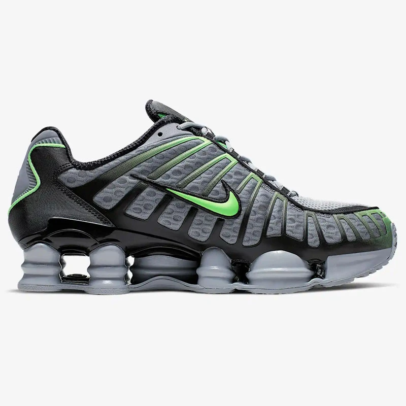 - Комбинирана горна част с изцяло TPU клетка е почти точно копие на оригиналните маратонки Nike Shox Tl от 2003г.