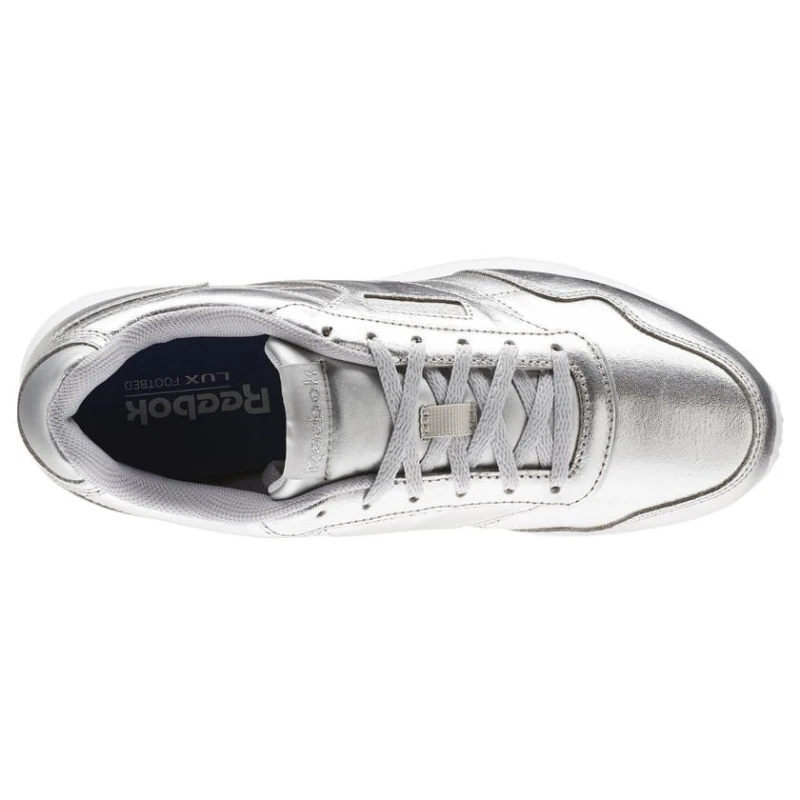 Дамски обувки Reebok Royal Glide Lx са изработени от мека естесвена кожа с нисък профил за по-голяма свобода при движение.Обувките са със свалящи се Ortholite стелки,който абсорбират влагата от крака допълнени с Memory пяна за по-меко усещане при движение.Flex каналите в предната част на обувката придават допълнителна гъвкавост и удобство когато сте в движение.