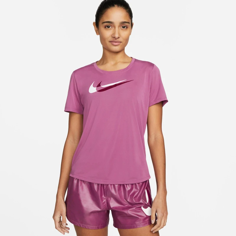 - Дамска тениска Nike Swoosh е изработена от лека финна полиестерна материя.