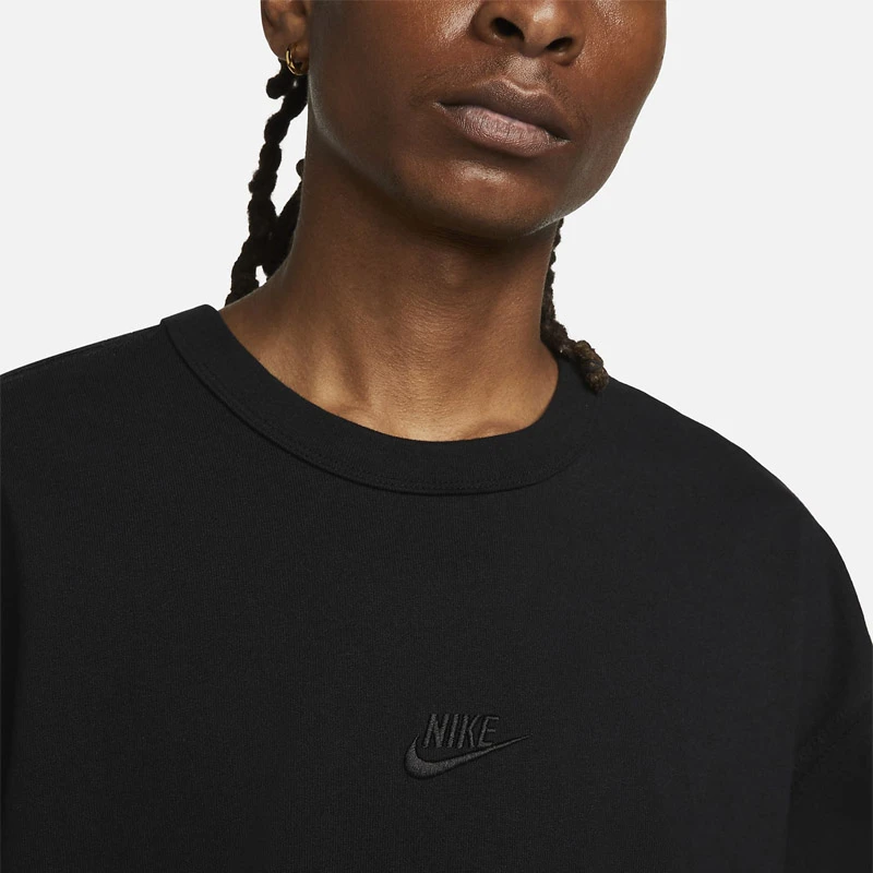 - Паднали рамене, по-дълги ръкави и просторно място придават на тениската Nike Prem Essntl спокоен и небрежен вид.