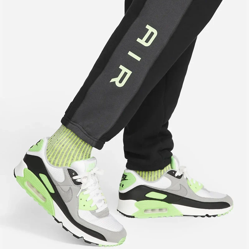 - Страничен надпис Air в контрастен неоново зелен цвят.