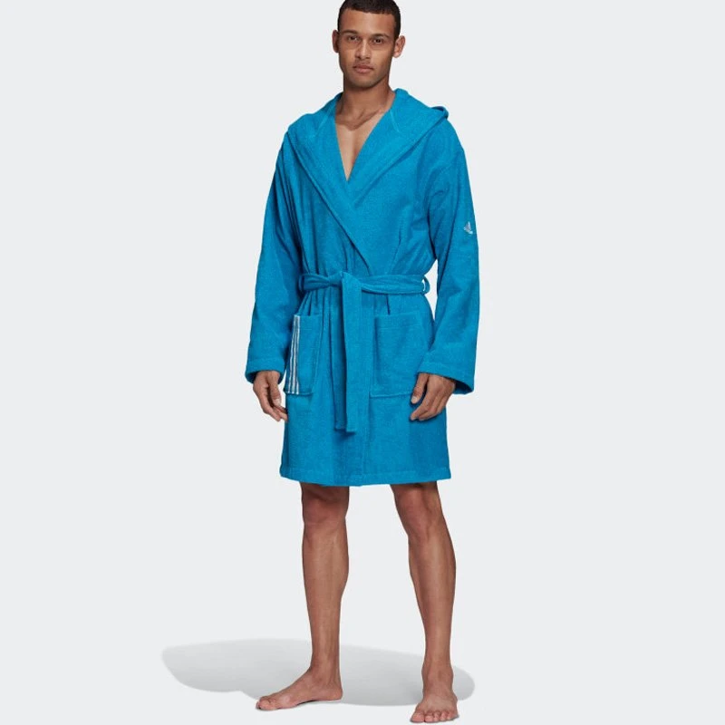 - Мъжки халат Adidas е изработен изцяло от мека памучна материя.