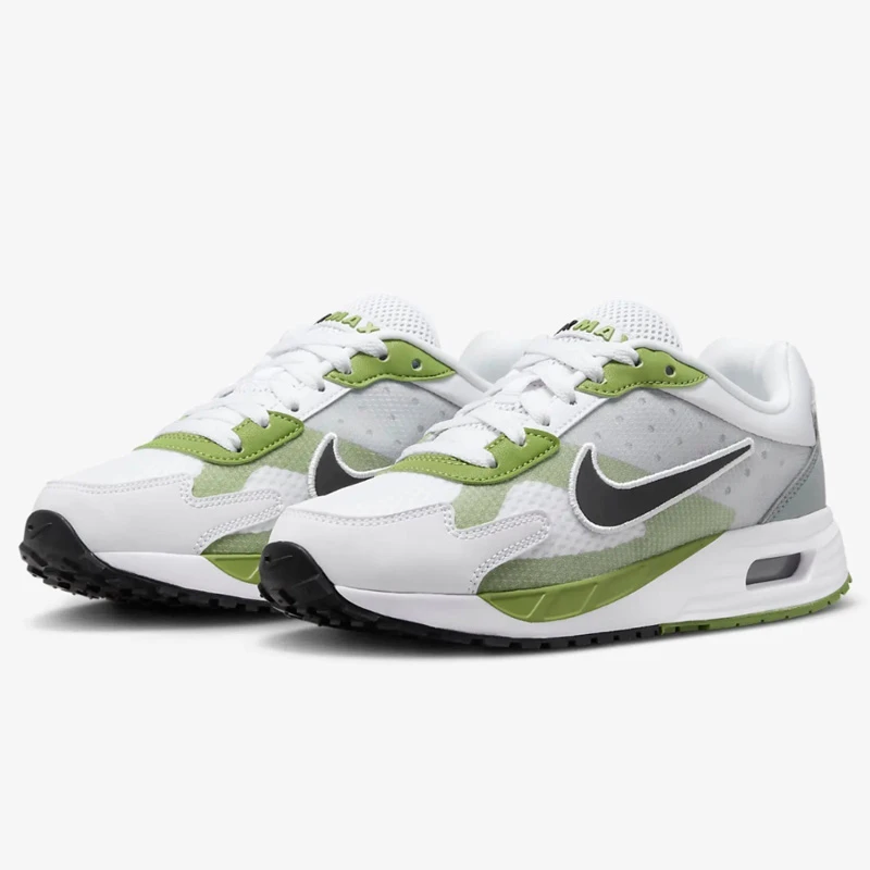 - Отличаващи се линии, класически дизайн и ненадминат комфорт са вложени в този уникален модел. Няколко слоя дишаща мрежа и синтетична кожа правят Air Max Solo едновременно издръжлив и дишащ. Формата на петата е вдъхновена от AM90, докато AM180 влияе върху текстурирания въздушен модул, осигурявайки точното количество омекотяване.