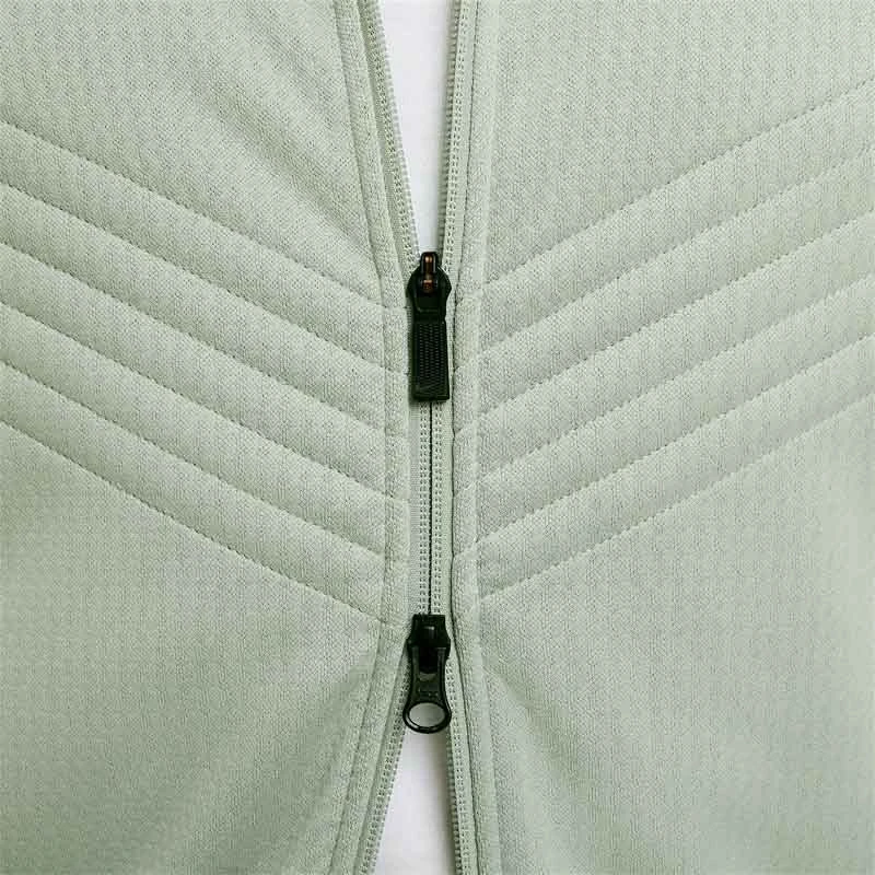- Дизайнът с пълен двупосочен цип прави горнището лесно за обличане и събличане.