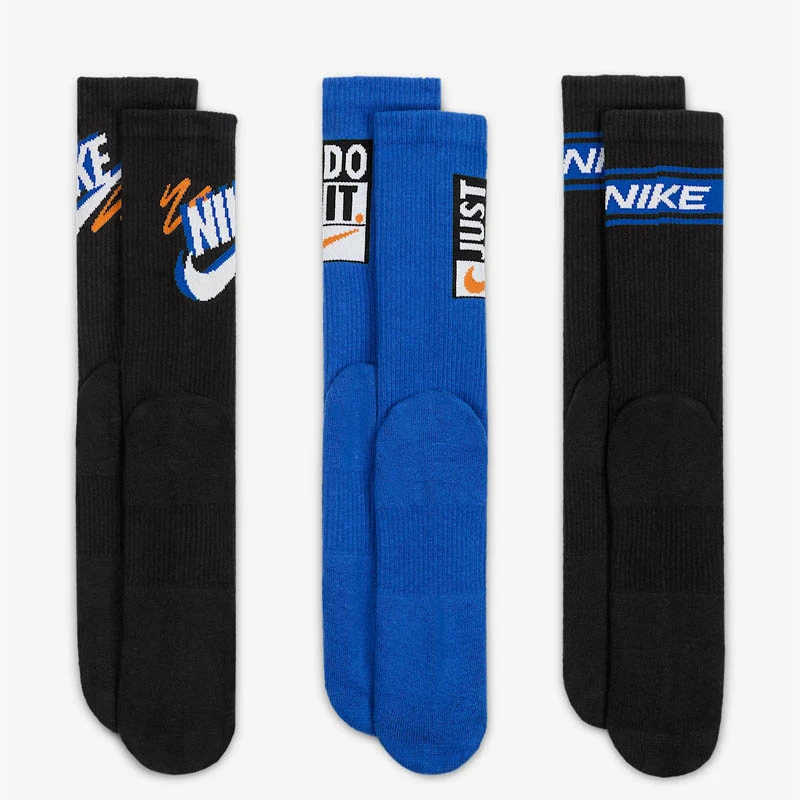 - Комплекта съдържа 3 чифта в черен и светлосин цвят с цветна бродерия Nike в горната част, която допълва дизайна на модела по неповторим начин.