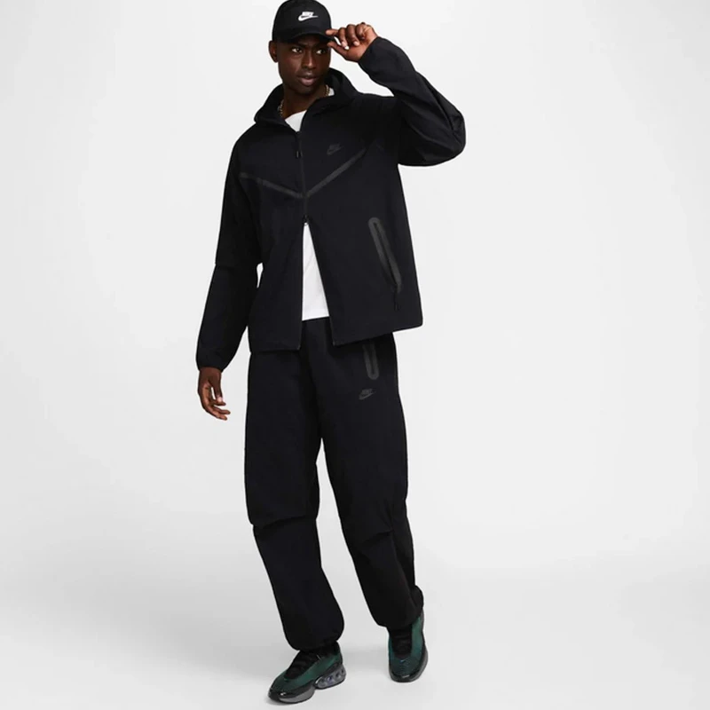 - Странични джобове с цип и емблематичната гумена лента отличаваща модела Nike Tech.