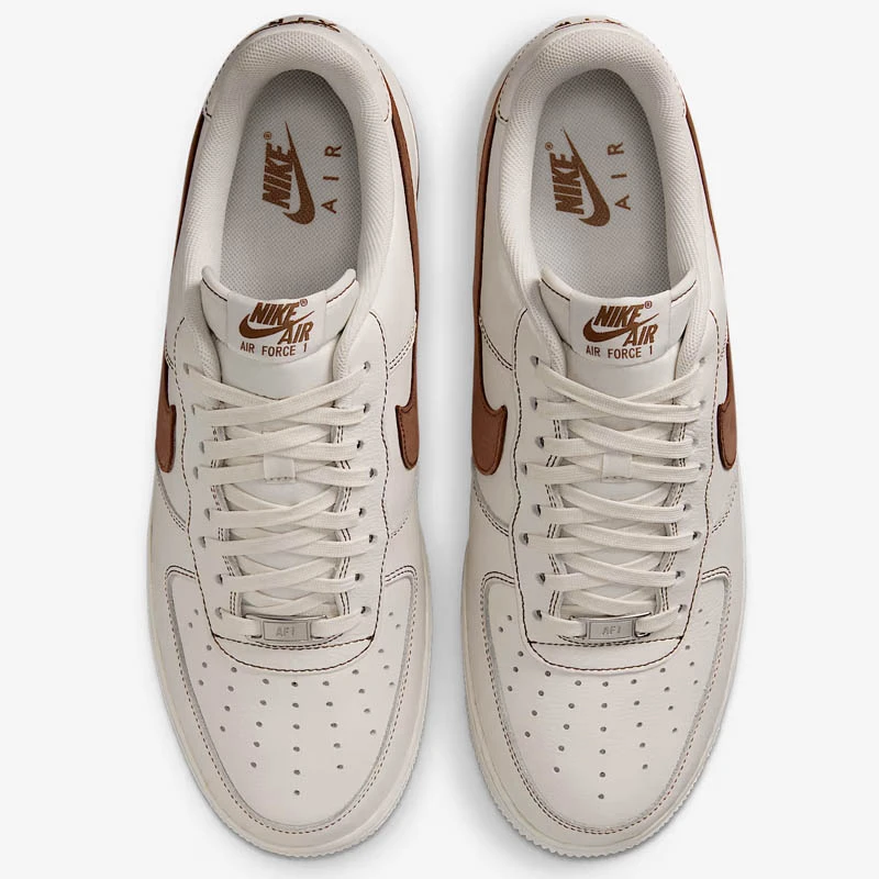 - Странично лого Nike в кафяв цвят на двете обувки.