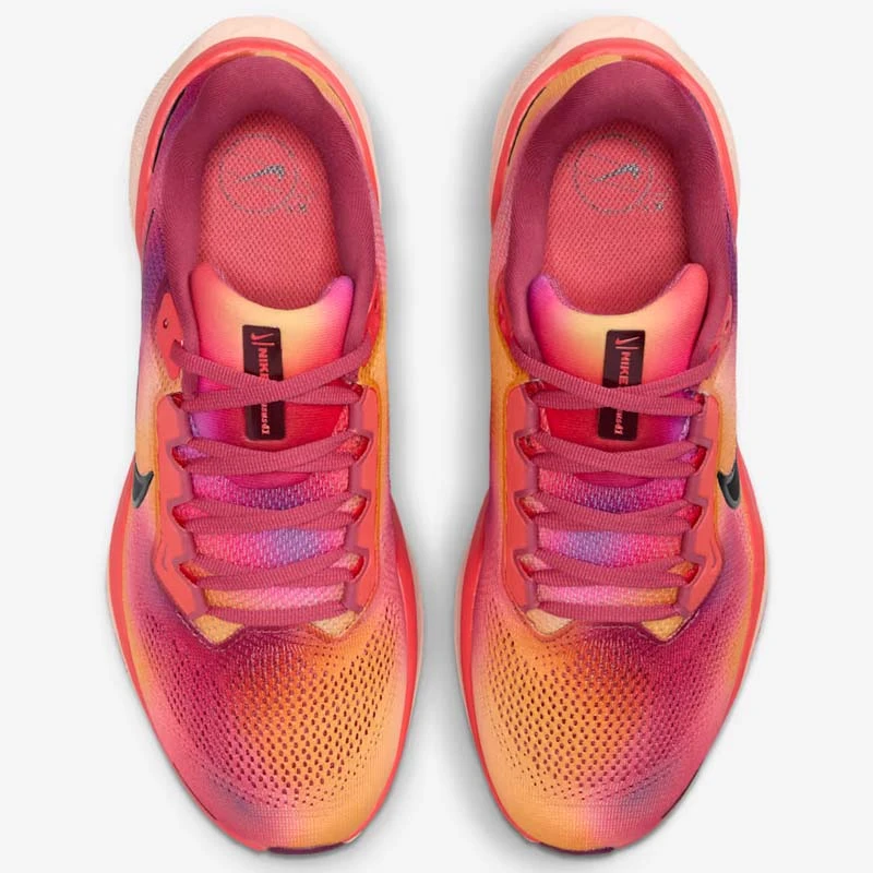 - Маратонките за интензивни тренировки Pegasus на Nike вече достигат 41-вото си издание. Nike Air Zoom Pegasus 41, подобно на своите предшественици, се фокусира върху поддръжката, комфорта и отзивчивостта. Това гарантира страхотно изживяване при бягане, независимо колко далеч трябва да стигнете.