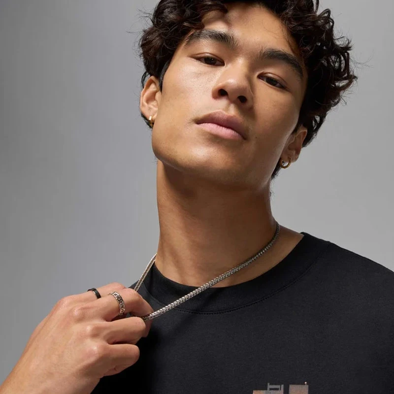 - Стилът на Jordan, обновен - точно както трябва да бъде. Памук със средна плътност прави тази класическа тениска мека и удобна.