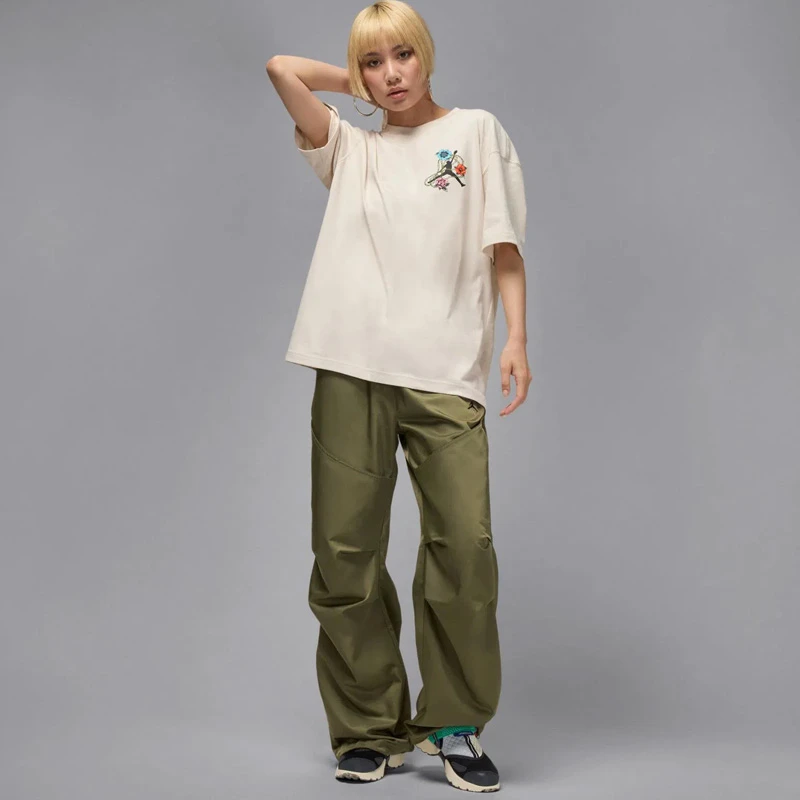 - Графичните детайли отпред и на гърба с флорални мотиви отразяват енергията и спортния дух на йорданската култура. Тя може лесно да се комбинира с долнища, клинове или къси панталони Jordan за ежедневно носене. Модела допълва както атлетичния шик, така и уличното облекло, което я прави основен елемент от гардероба ви.