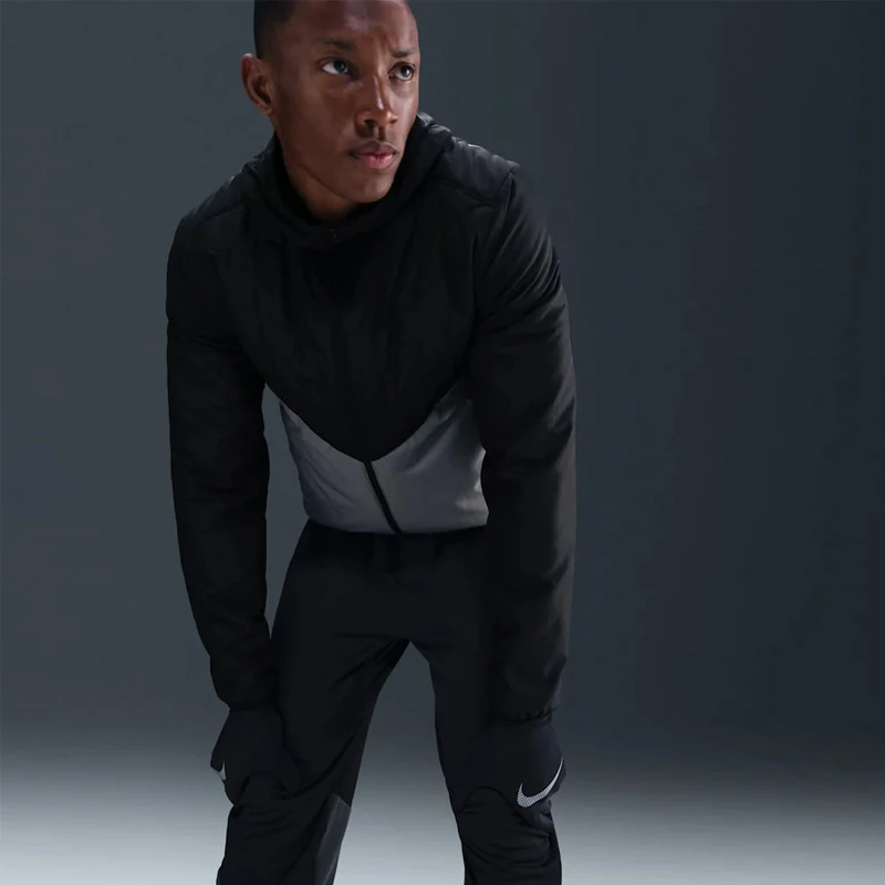 - Технологията Nike Therma-FIT помага за управление на естествената топлина на тялото ви, за да ви поддържа топлината в студеното време. В комбинация с тъкана, водоотблъскваща материя, тя ви помага да се чувствате сухи и защитени при влажно време.