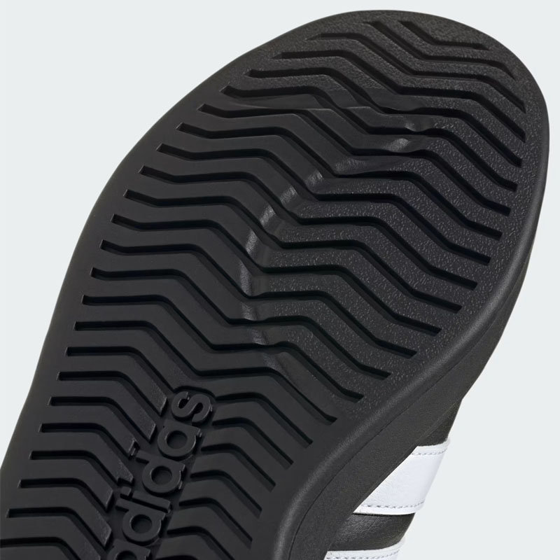 - Горната част е изработена от синтетична кожа, която е изключително издръжлива и лесна за поддръжка. Трите ленти на Adidas се открояват на фона на черното покритие. За тези години те са се превърнали в еталон за класа и продължават да присъстват в моделите на марката.