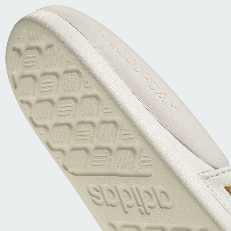 - Горната част е изработена от синтетична кожа и подплата от текстилна материя от вътрешната страна, докато подчертаните 3 ленти на Adidas в златист цвят, добавят стилен завършек на модела.