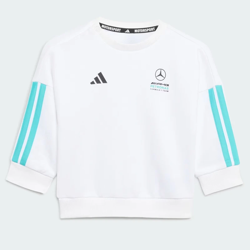 - Запознайте мъничето си със света на моторните спортове с този невероятен бебешки комплект от колекцията на Mercedes-AMG Petronas Formula 1 Team DNA Baby Jogger съдържащ блуза с дълъг ръкав и удобно долнище декорирани с емблематичното лого на Adidas 3-Stripes.