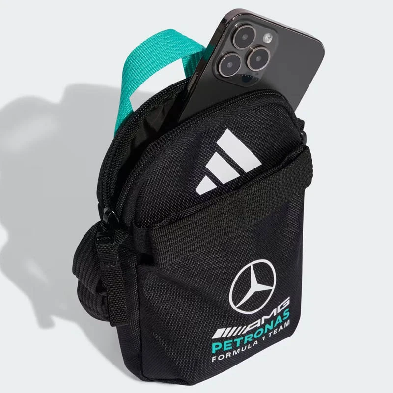 - Тази малка, но компактна чанта Mercedes - AMG Petronas Formula 1 Team DNA е вашият най-важен съюзник за съхранение на ежедневните ви вещи. С логото и цветовете на моторния отбор, тя е задължителна за всеки фен.